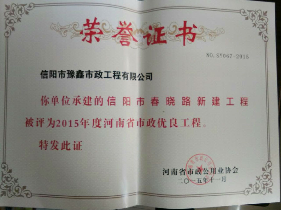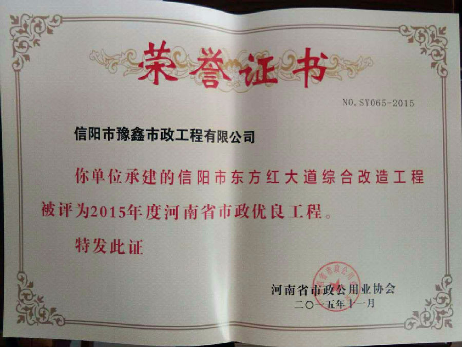 好風憑借力,送我上青云。近年來,公司積極參與城市市政基礎設施建設施工,積極參與市場競爭,先后承擔施工了市政府重點工程南京路道路改造工程、春曉路道路改造工程,東方紅大道道路改造工程、龍江東路新建工程等重點民生工程,其中南京路道路改造工程被省建設廳評為“中州杯”, 春曉路和東方紅大道道路改造工程被省建設廳評為“省優(yōu)工程”,成為城區(qū)一道道亮麗的風景線。參與施工了市典范小區(qū)“臺北城上城”、“恒大名都”以及師范學院、職業(yè)技術學院、交警支隊和軍區(qū)道路工程,參與施工了雞公山管理區(qū)、南灣管理區(qū)、明港鎮(zhèn)和羅山縣等部分道路小區(qū)工程施工,累計大小各類施工工程三百余項,企業(yè)影響力不斷擴大、輻射力不斷增強,市場份額不斷提高,企業(yè)信譽不斷彰顯,為信陽城市建設做出了積極貢獻,為企業(yè)的可持續(xù)發(fā)展插上了騰飛的翅膀。
